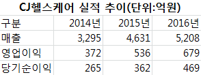 CJヘルスケアの昨年の売上高5208億ウォン、営業利益679億ウォン、当期純利益469億ウォンだった。会社の価値は1兆ウォン以上と推定される。